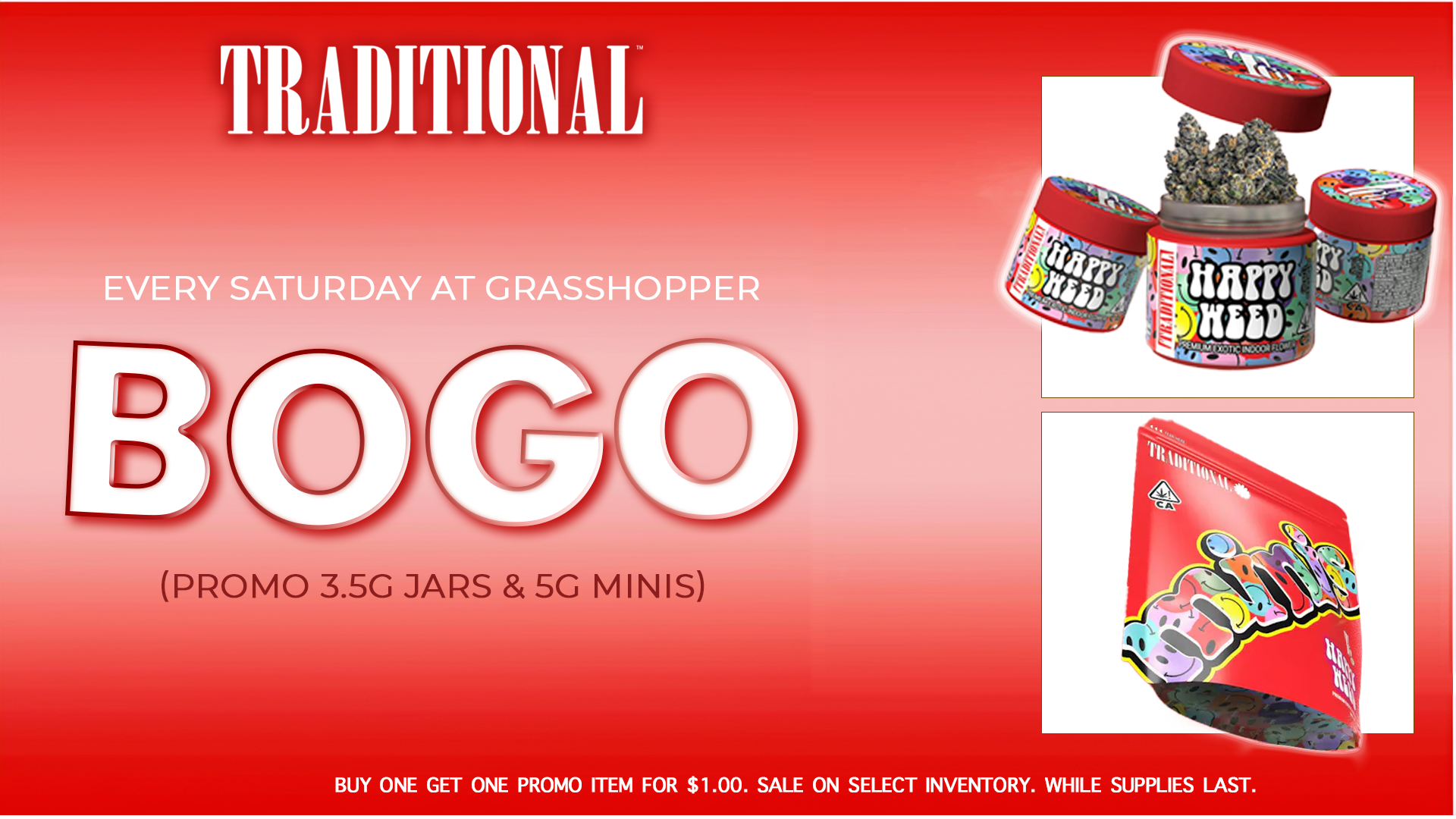 Every Saturday — Buy One Get One all Traditional 3.5g jars & 5g mini bags.Â