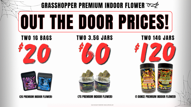 Find your favorite cannabis brands at Grasshopper Dispensary — Chula Vista’s first licensed dispensary! Conveniently located right off the 54 freeway, our locally owned storefront offers an unbeatable selection, lower prices, daily deals and a welcoming vibe. Skip the line by ordering ahead and experience fast, friendly service.